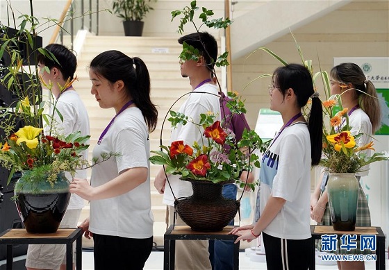 6月13日,上海应用技术大学的学生们设计创作的萱草花艺作品即将在开幕式现场亮相。 当日,“2020中国(上海)萱草文化节”在上海应用技术大学开幕,校园里数百个品种的萱草花竞相绽放,萱草科研推广、萱草文化交流等多项活动同时举行。 新华社记者刘颖摄
