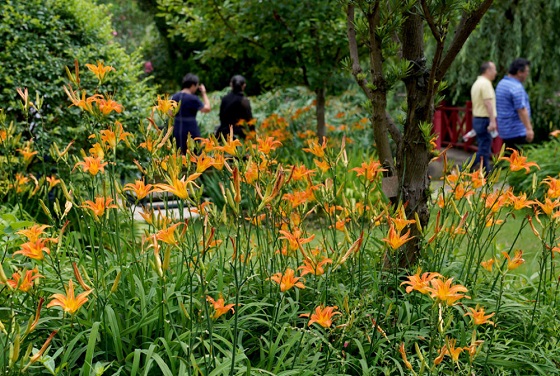 6月13日,张志国教授在介绍不同品种的萱草花。 在中国传统文化中,萱草有着深厚的文化内涵,萱草花被称为“母亲花”。唐代诗人孟郊《游子行》:“萱草生堂阶,游子行天涯。慈母依堂门,不见萱草花。”上海应用技术大学将萱草文化与中华优秀传统文化教育相结合,举办“萱草文化节”,开展毕业季感念师恩、感恩母校、报恩父母、报效祖国等活动。