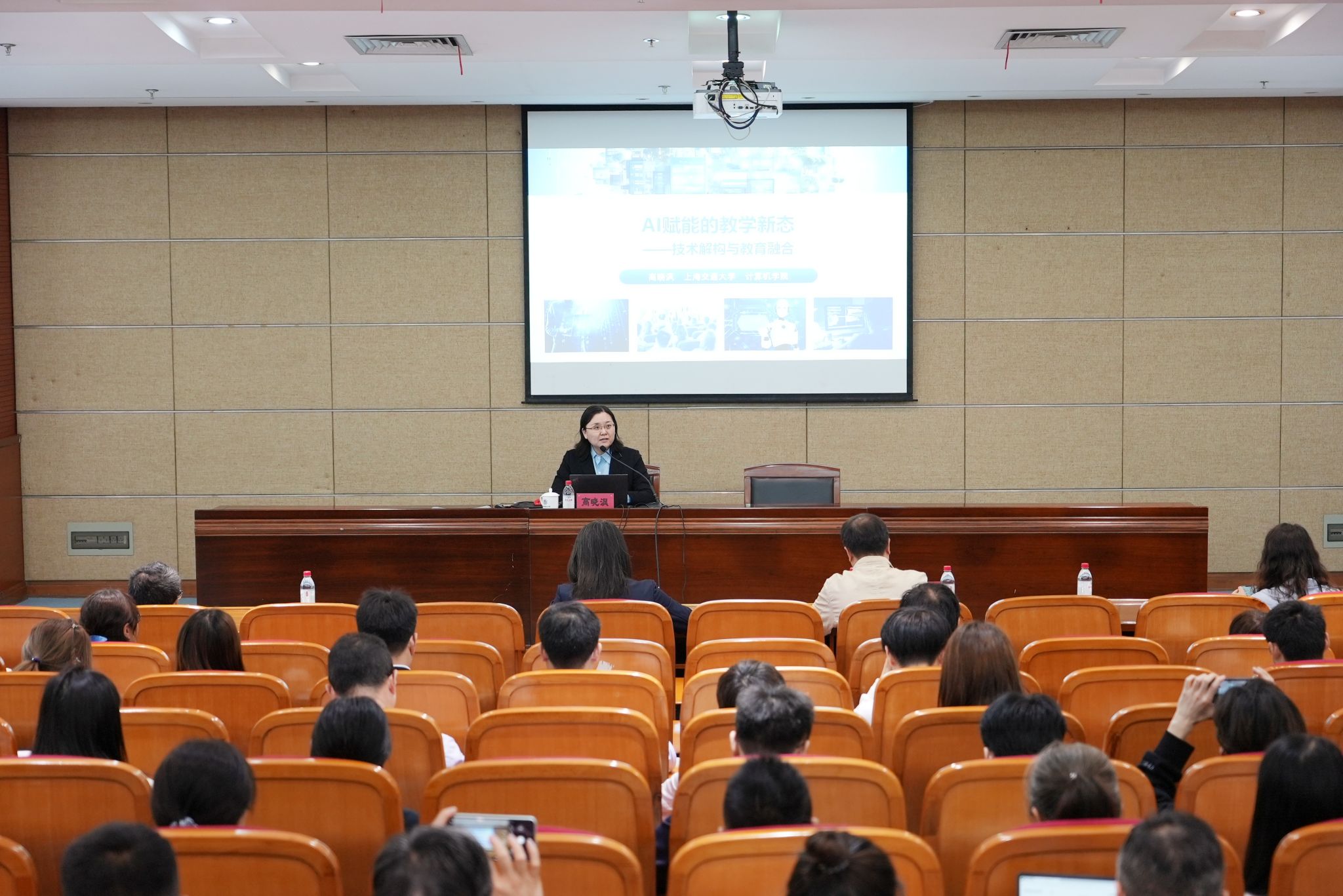 在报告中,高教授通过具体案例,展示了人工智能在课堂教学、科研与实践教学以及综合场景中的创新应用,深入探讨了AI技术如何重塑教学模式,并分享了她在推动AI赋能课堂变革过程中的独到与见解实践经验。她以计算机课程为例,系统介绍了AI技术在“课程调研”“出题辅助”“课程可视化”等环节的赋能实践,并针对当前AI应用中的关键问题,如AI幻觉现象、价值导向偏差以及学生学习中的“双刃剑”效应,提出了具有可操作性的系统解决方案。
