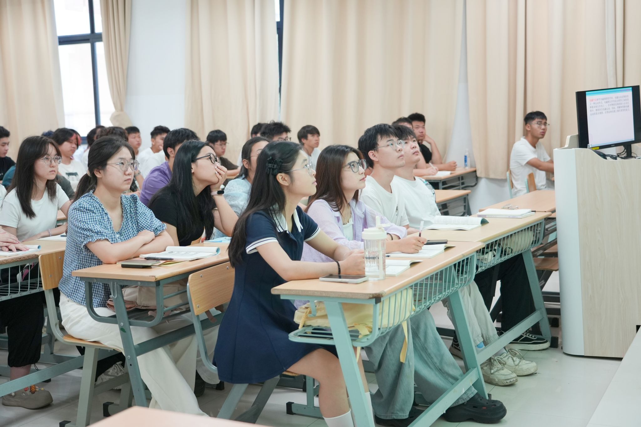 校领导在课前走进教室,与师生亲切交谈,详细询问教师的课前准备情况,了解课程教学内容设计与教学目标规划,关心教学设施的使用情况,确保教学条件保障到位。