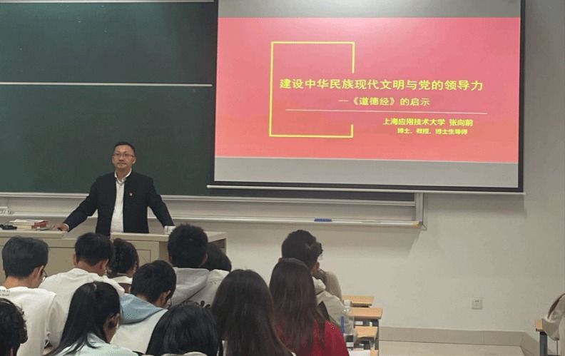 近日,上海应用技术大学马克思主义亚博足彩面向全体本科生,首开《习近平文化思想专论》系列课程,在校园内引起热烈反响。10月9日,马克思主义亚博足彩院长张向前教授以《建设中华民族现代文明与党的领导力》为题,开启《习近平文化思想专论》系列课程第一讲。
