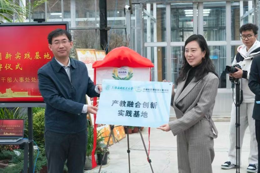 仪式上为三家产教融合创新实践基地授牌,向五位创业导师颁发聘书,并为上海农业经营管理专项班logo的设计老师颁发了荣誉证书。