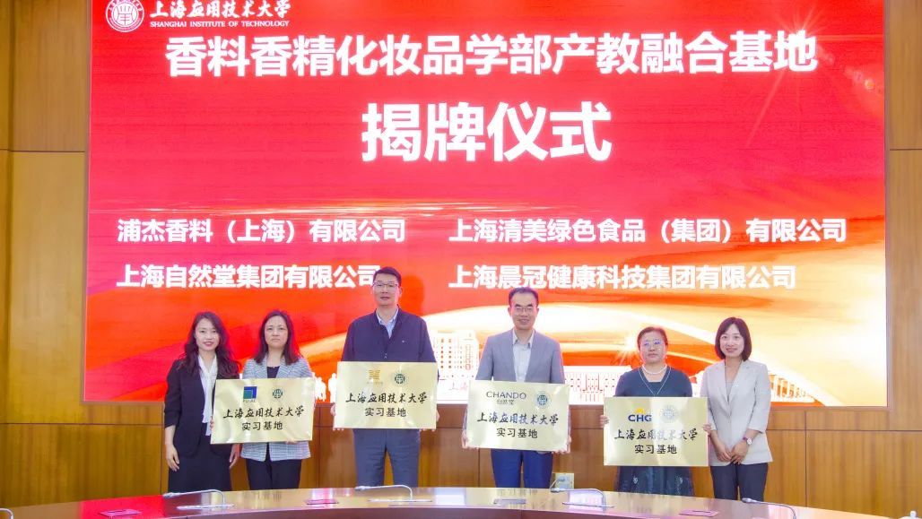 会上,产教融合实习基地揭牌仪式举行。浦杰香料(上海)有限公司、上海自然堂集团有限公司、上海清美绿色食品(集团)有限公司、上海晨冠健康科技集团有限公司四家知名企业代表与学部签署合作协议。这些实习基地将成为校企协同育人的核心平台,为学生提供“全链条练兵场”,在真实项目中锤炼“技术+创新”双核能力。
