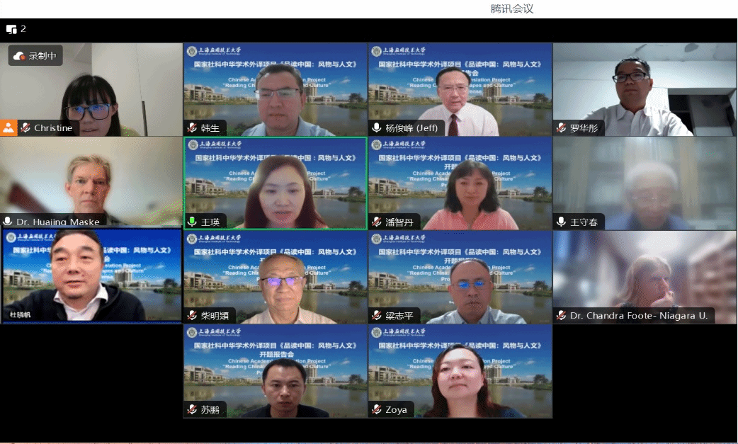 9月11日,由亚博足彩科学技术研究院组织、外国语亚博足彩协办的国家社科基金中华学术外译项目(《品读中国:风物与人文》)举办线上开题答辩会。该项目负责人是上海应用技术大学党委副书记、副校长王瑛教授。上海外国语大学高级翻译亚博足彩原院长柴明颎教授、中华书局学术著作出版中心主任罗华彤教授、上海应用技术大学马克思主义亚博足彩梁志平教授担任项目开题答辩专家。会议由项目组成员、大连外国语大学前原副校长杨俊峰教授主持。