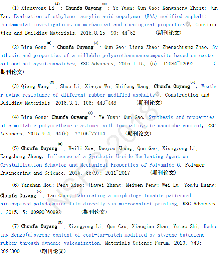 聚合物共混改性;聚氨酯制备及应用,主要集中在聚氨酯弹性体(TPU、MPU)合成、粘合剂及废旧聚氨酯材料再利用;聚合物改性沥青在功能性路面材料中应用如彩色防滑路面、透水、排水路面;自愈合材料等。