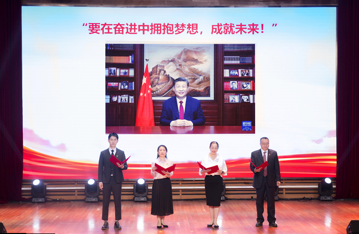 向着强国建设、民族复兴的宏伟目标,奋进!由图书馆直属党支部书记董国文作词,图书馆馆长黄俊革、体育教育部教师万芹、理亚博足彩教师金妍、经济与管理亚博足彩辅导员彭烨朗诵的诗词《奋进,是最美的人生姿态》,呈现了一代代上应人服务国家战略、深耕思政教育、精研教育教学、引领学生成长等方面的育人成效,是一代代上应人坚持“为党育人 为国育才”的生动实践。