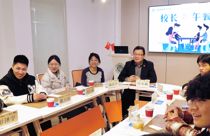 1月5日,2024年首场“校长午餐会”在奉贤校区易班体验中心举行,校长汪小帆出席午餐会,和学生代表亲切交流。