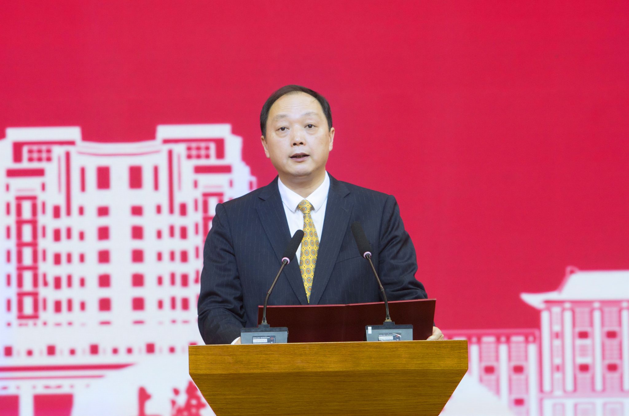 校党委书记郭庆松主持大会,校长汪小帆作主旨报告。