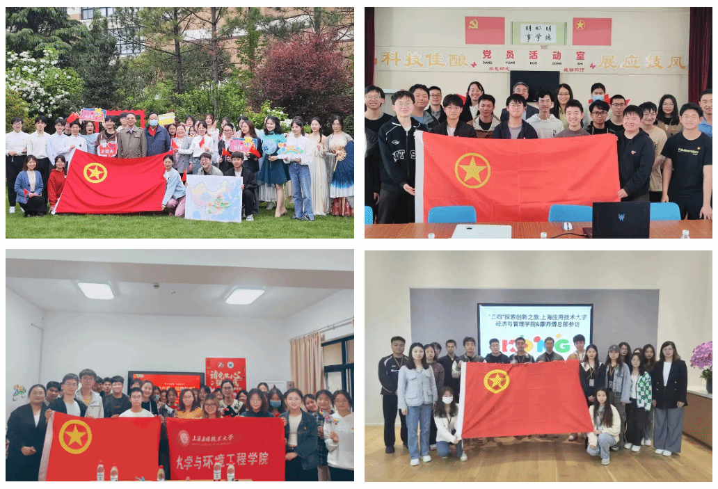 为深入学习贯彻习近平新时代中国特色社会主义思想和党的二十大精神,纪念五四运动105周年,传承和弘扬五四精神,五四青年节前夕,上海应用技术大学举行“青春有我,挺膺担当”五四集中主题团日活动,在团支部、“一站式”学生社区展团旗、亮团徽、唱团歌,共答新时代青春答卷。