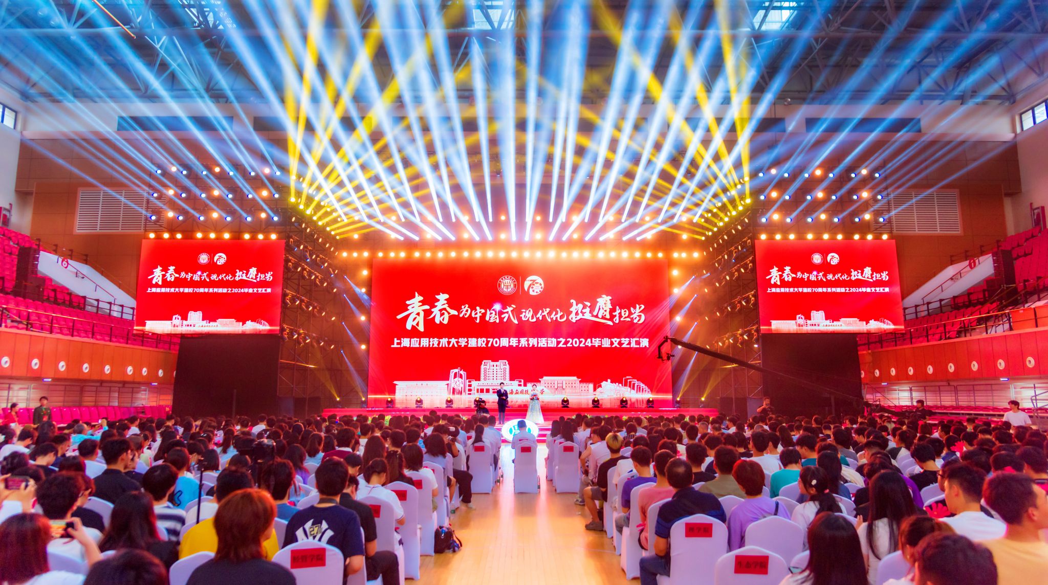 岁月流金、青春激情,灿烂征程、奔赴未来。难忘的送别,轻轻道一声珍重!6月28日,“青春为中国式现代化挺膺担当”上海应用技术大学建校70周年系列活动之2024年毕业文艺汇演在奉贤校区体育馆举行,我们共同回首苒苒岁月,共同唱响青春之歌。