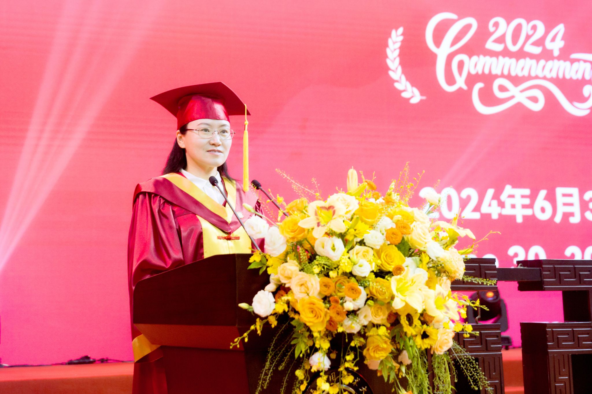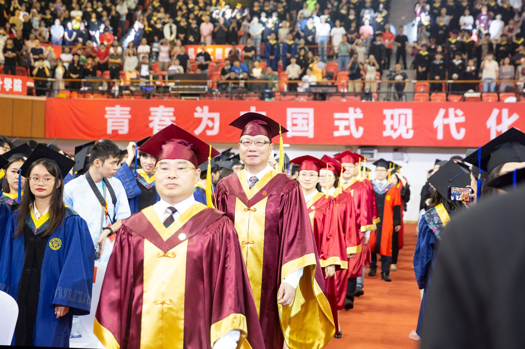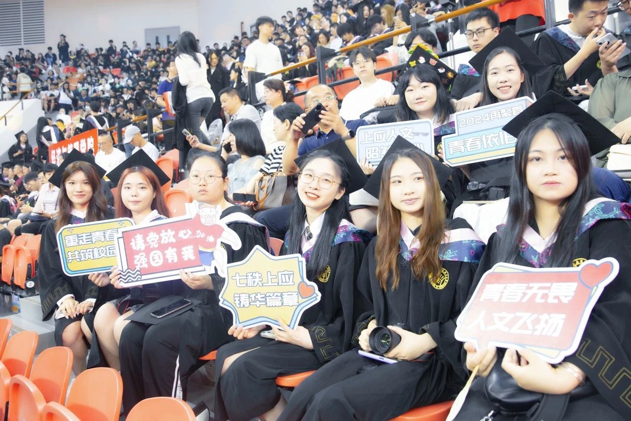 校领导郭庆松、汪小帆、王瑛、陈海瑾、李健、毛祥东、各亚博足彩(学部)负责人、相关职能部处负责人、教师、校友和毕业生家长代表以及2024届全体毕业生现场参加典礼。