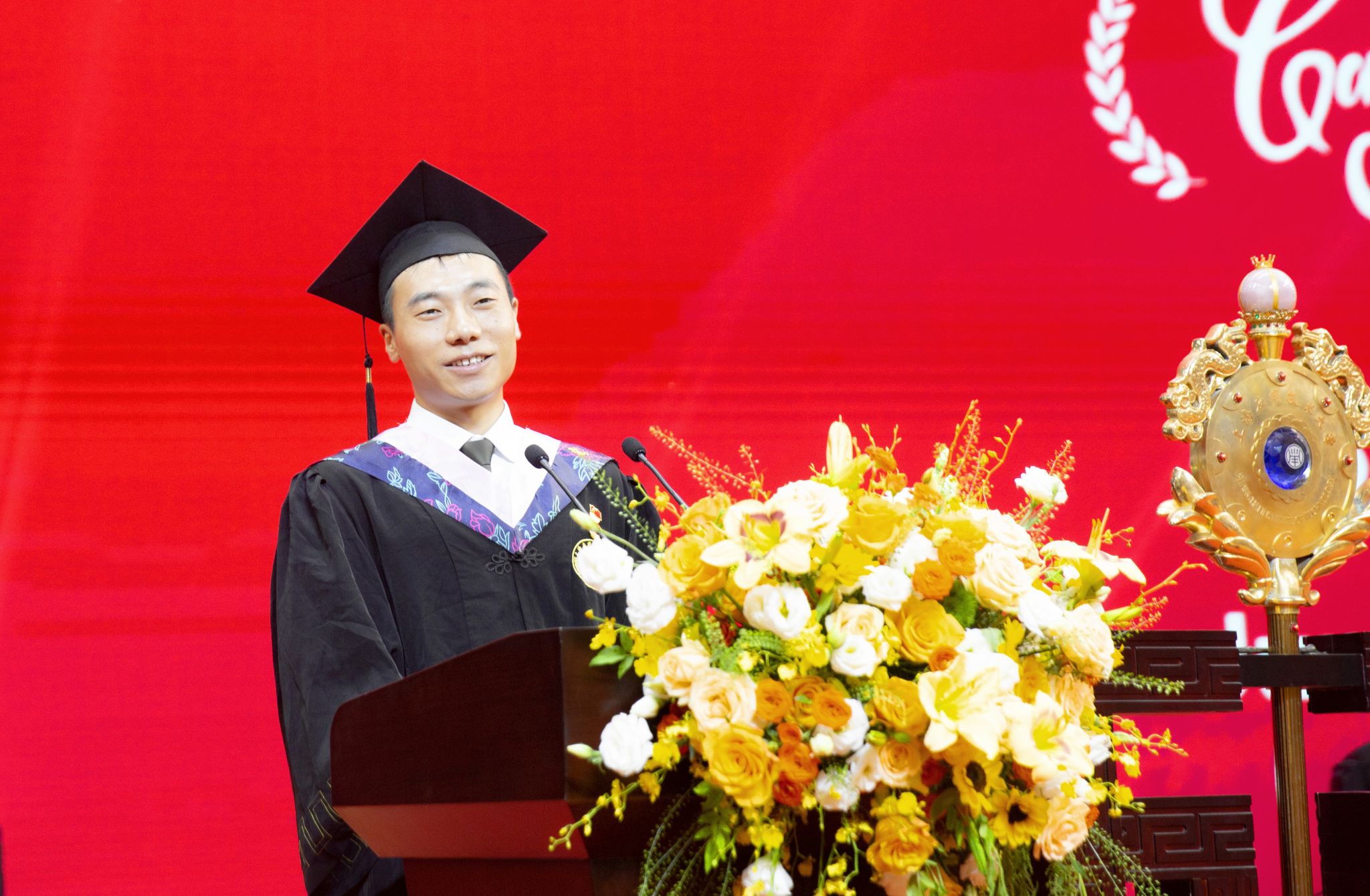 退役士兵大学生、经济与管理亚博足彩张博炜同学作为本科生代表发言,信念如火,照亮前路,将切实回答好“民族复兴,青年何为”的青春之问。