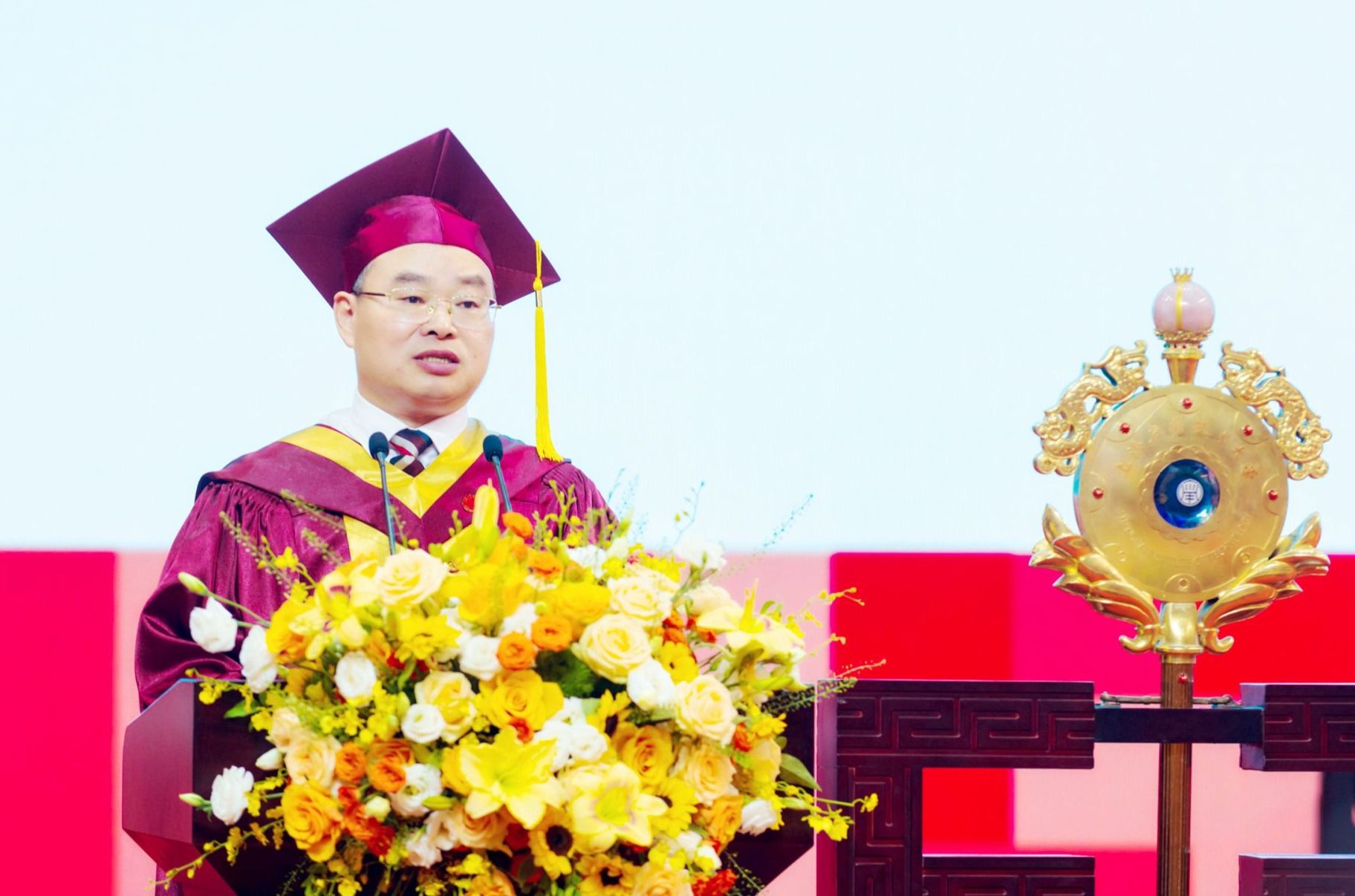 校长汪小帆以《在技术变革时代直面挑战、逐浪前行》为题,围绕学习、探索和价值引领为学子送上毕业祝福和希望:一是勤于深度学习,顺应变革潮流。二是勇于开拓创新,走出精彩人生。三是坚持求真向善,突出价值引领。