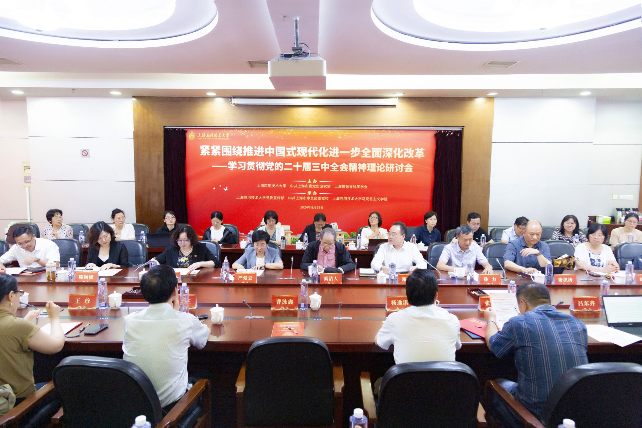 8月29日,由上海应用技术大学、中共上海市委党史研究室、上海市领导科学学会共同主办,上海应用技术大学党委宣传部、上海市奉贤区委党校、我校马克思主义亚博足彩承办的“学习贯彻党的二十届三中全会精神理论研讨会”在我校举行。校党委书记、上海市领导科学学会会长郭庆松教授作学术致辞。校党委副书记陈海瑾主持会议开幕式。
