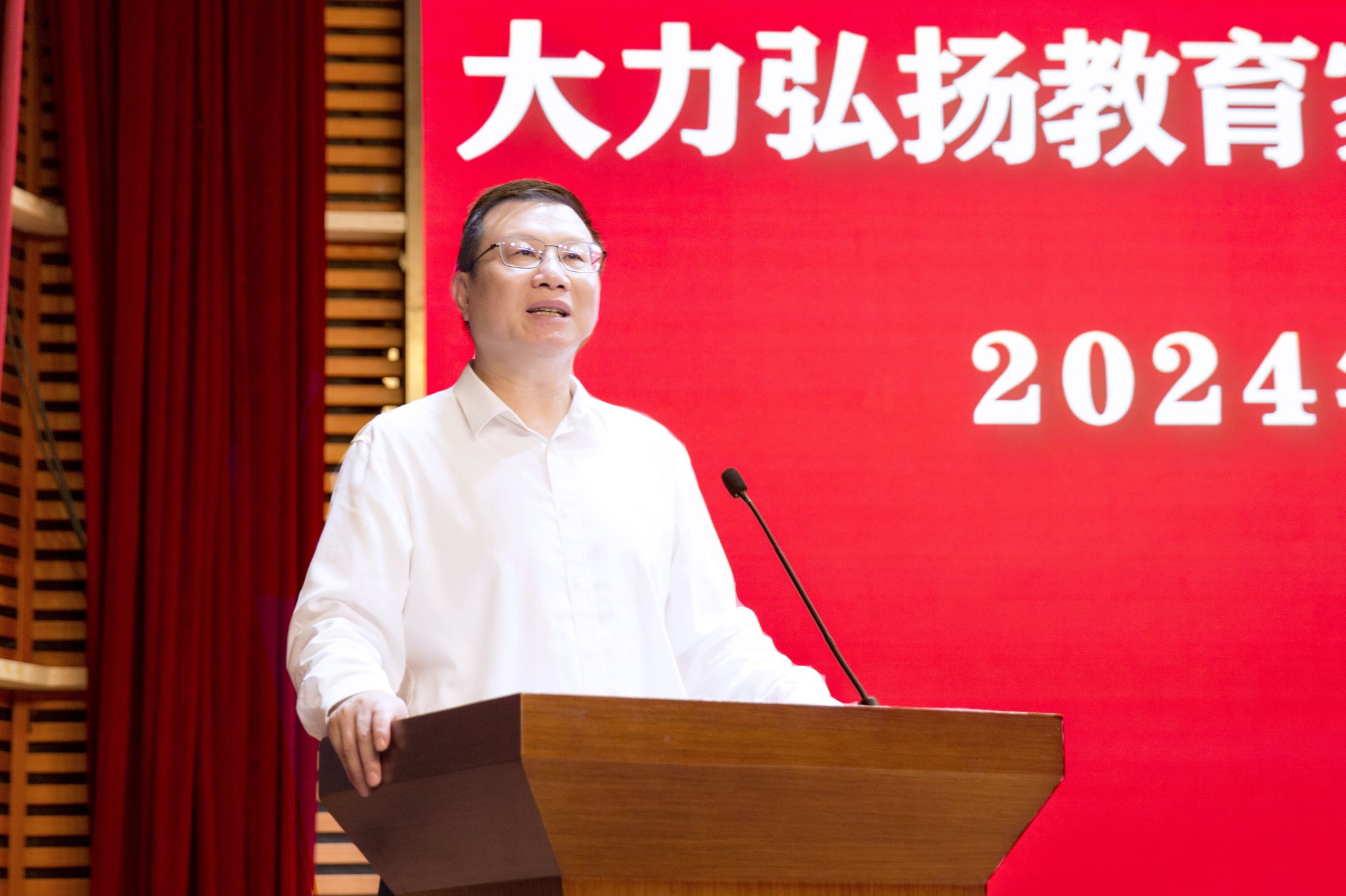 三尺讲台系国运,一颗丹心铸民魂。9月9日下午,在第40个教师节之际,上海应用技术大学召开“大力弘扬教育家精神,加快建设教育强国”2024年教师节庆祝大会,表彰先进、树立典型,向全校教师送上节日问候和诚挚祝福。校党委书记郭庆松,校长汪小帆,校党委副书记陈海瑾,校党委副书记、纪委书记、监察专员李健,副校长毛祥东,我校1989届校友、上海汇得科技股份有限公司董事长钱建中出席庆祝大会,与广大师生同贺同庆属于教师的节日。