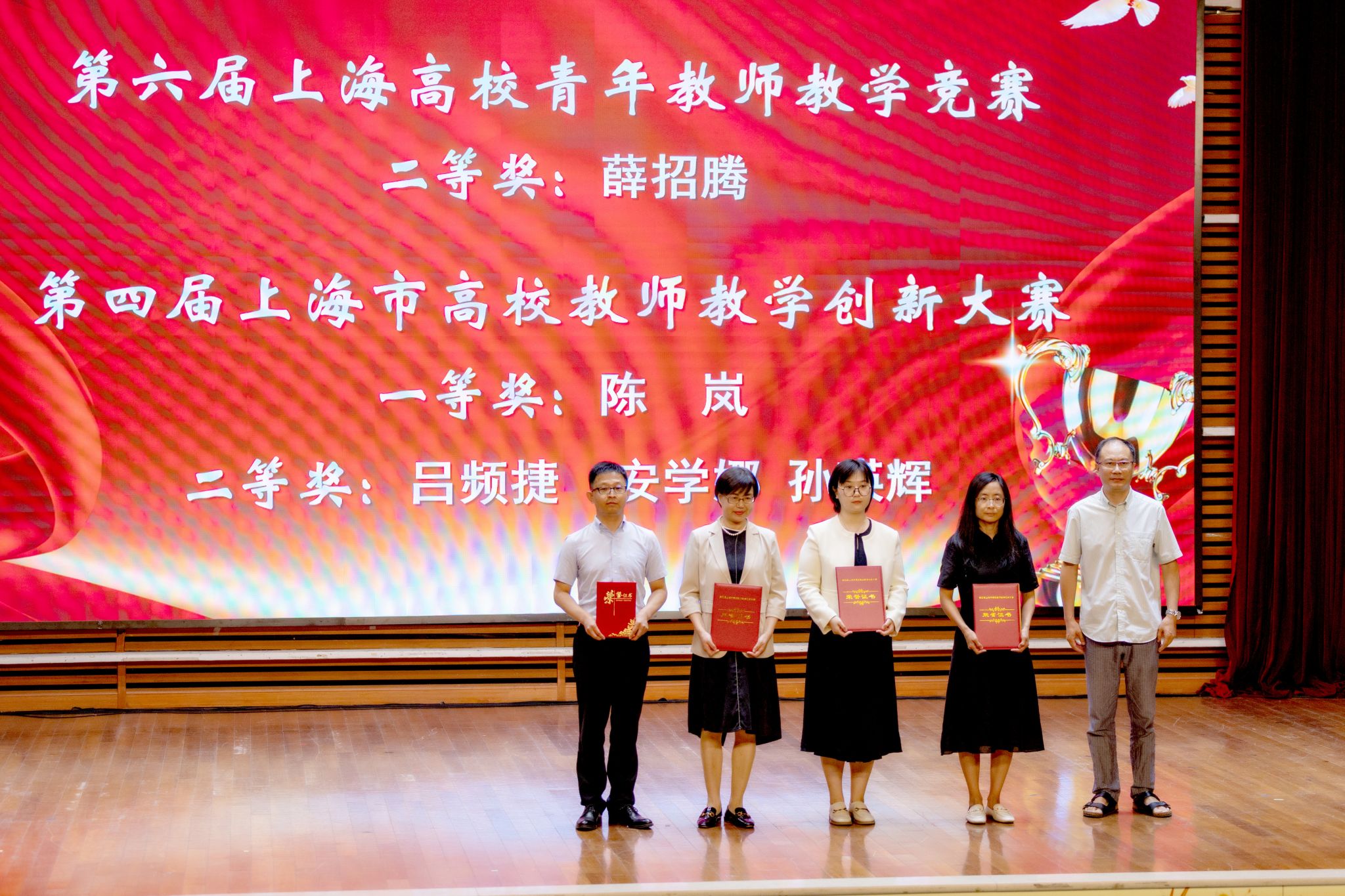 毛祥东为第六届上海高校青年教师教学竞赛二等奖、第四届上海市高校教师教学创新大赛获奖教师颁发获奖证书