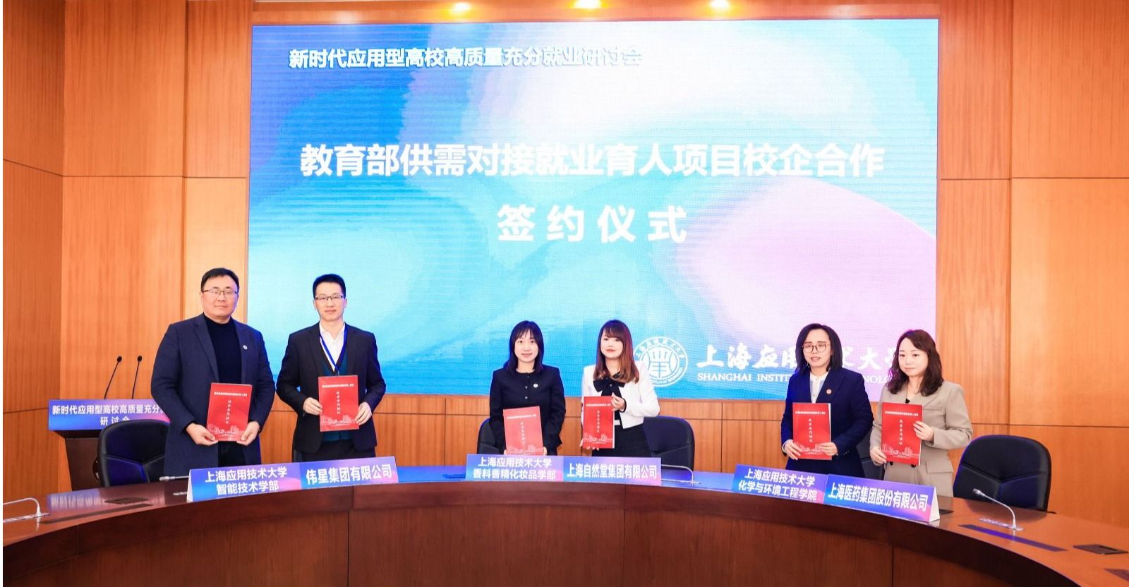 会议现场,还举行教育部供需对接就业育人项目校企合作签约仪式。上海自然堂集团有限公司、上海医药集团股份有限公司、上海伟星集团有限公司三家企业与上海应用技术大学香料香精化妆品学部、化学与环境工程亚博足彩、智能技术学部合作签约,校企携手并进,不断深化协同创新机制,联合培养应用创新型卓越人才。