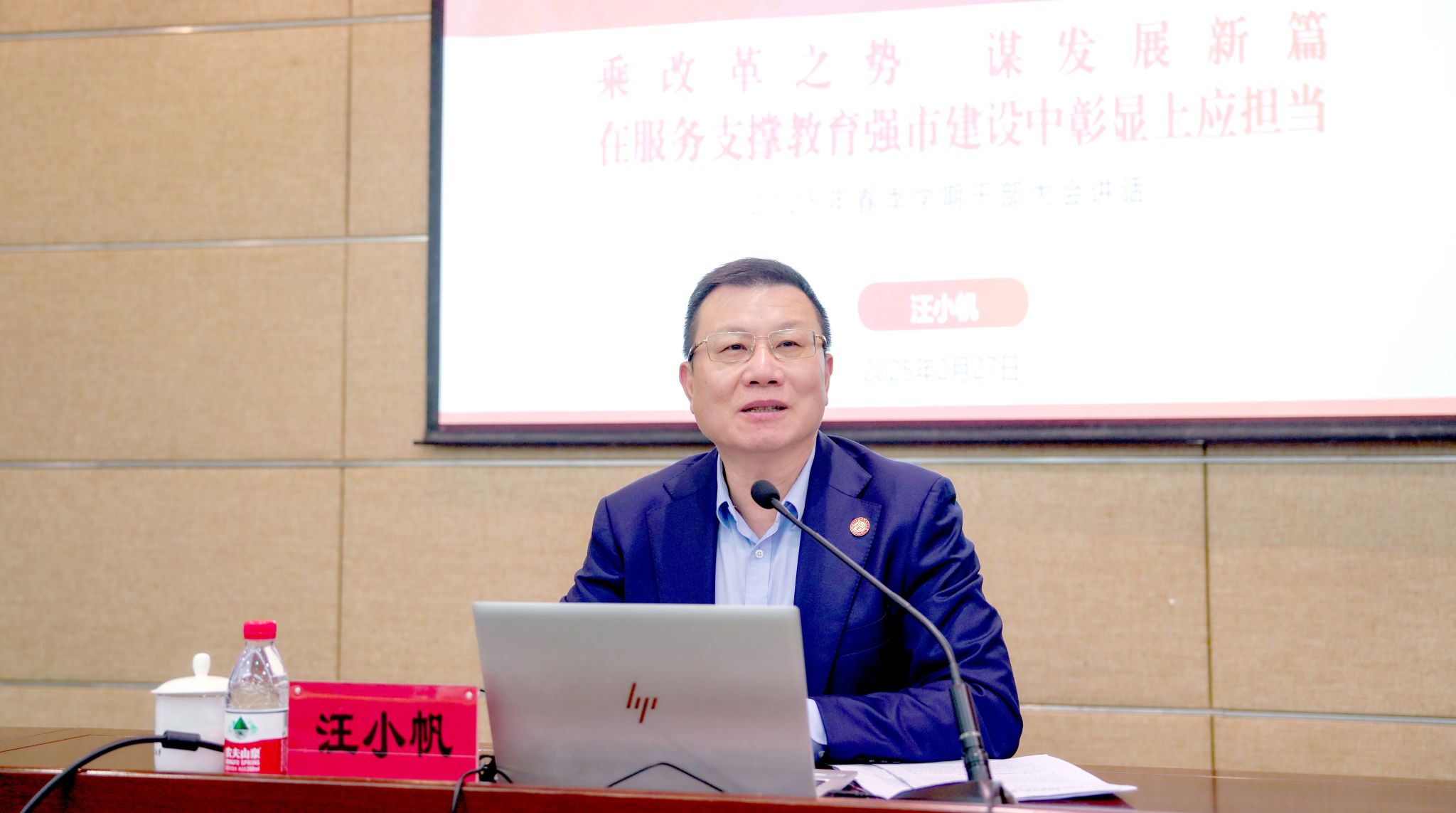 聚焦新一轮教育事业改革发展带来的机遇和挑战,汪小帆就2025年亚博足彩重点工作进行部署:高站位科学谋划编制“十五五”规划。秉持以德为先、以人为本、以应用立校、以技术报国的理念做好亚博足彩“十五五”规划。高质量做好2025年招生就业工作。强化“招生-培养-就业”联动评价机制,促进人才供需更加匹配。紧跟产业变革深入实施创新型人才培养模式改革。实施AI赋能专业升级,扎实推进审核评估整改,深化研究生协同育人机制改革。着力构建服务贡献导向的有组织科研新范式。促进科技成果转化提质增效,营造良好科研创新生态。打造适应改革发展需要的高水平人才师资队伍。持续做好高水平人才引育工作,制定并修订相关文件,积极推进考核制度改革,促进人才有序流动。全面提升大学治理和校园服务保障品质。持续推进机关和亚博足彩(部)机构改革,推进数字化治理转型,保障校园和谐稳定,筑牢安全底线。