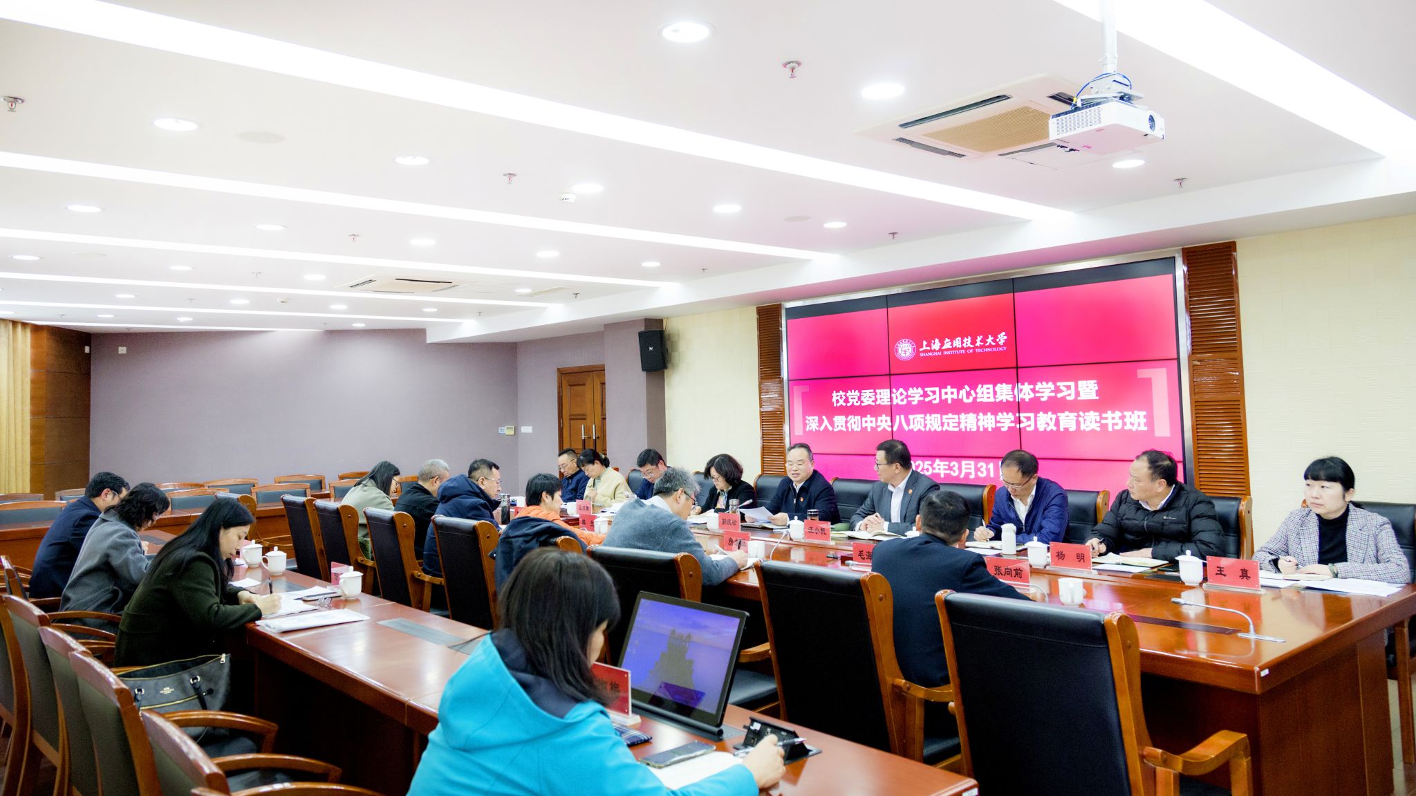 按照中央、市委和市教卫工作党委部署,根据亚博足彩党委关于深入贯彻中央八项规定精神学习教育工作安排,3月31日,亚博足彩党委举办理论学习中心组集体学习暨深入贯彻中央八项规定精神学习教育读书班,深入学习领会习近平总书记关于加强党的作风建设的重要论述和中央八项规定精神。校党委书记、党委理论学习中心组组长郭庆松,校长汪小帆,校党委副书记陈海瑾,副校长毛祥东、王占勇,校党委常委、宣传部长杨明出席,陈海瑾主持。