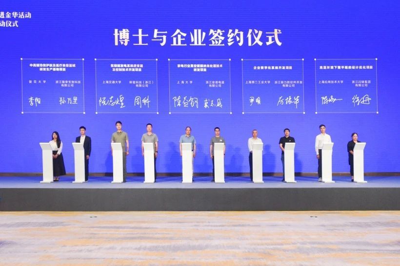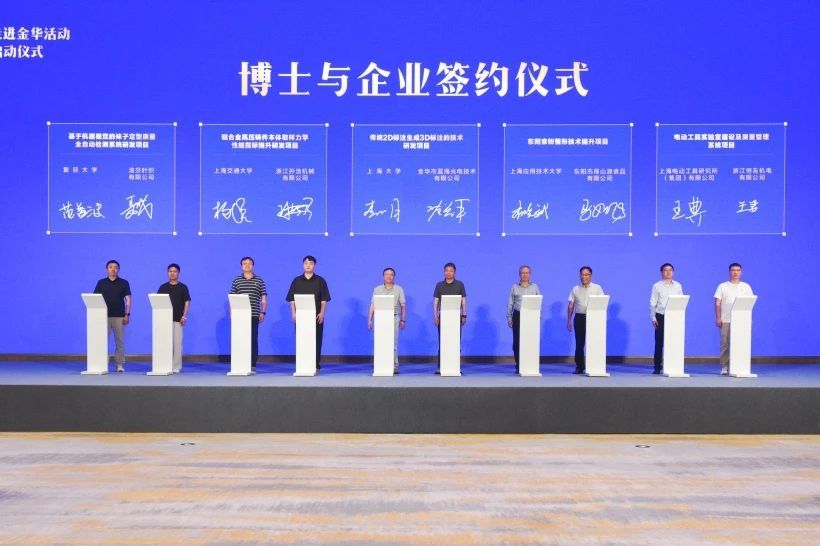 活动现场,双方签署战略合作协议,明确将在常态化产学研对接、技术联合攻关与协同创新、应用型人才培养、实习实践基地共建等方面开展深度合作。同期,浙江在沪院士之家签约及“千博入企”计划正式启动,进一步推动政产学研用深度融合。
