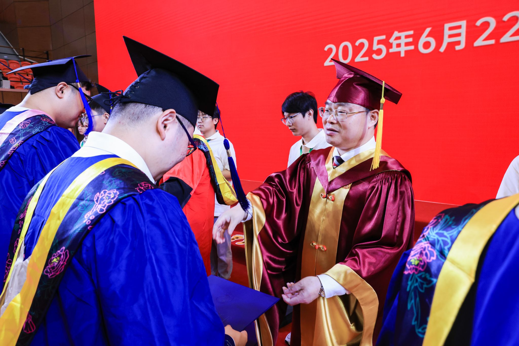 校领导郭庆松、汪小帆、王瑛、陈海瑾、李健、毛祥东、王占勇,各学部(院)党政负责人、相关职能部处负责人、教师、校友和毕业生家长代表以及2025届全体毕业生现场参加典礼。