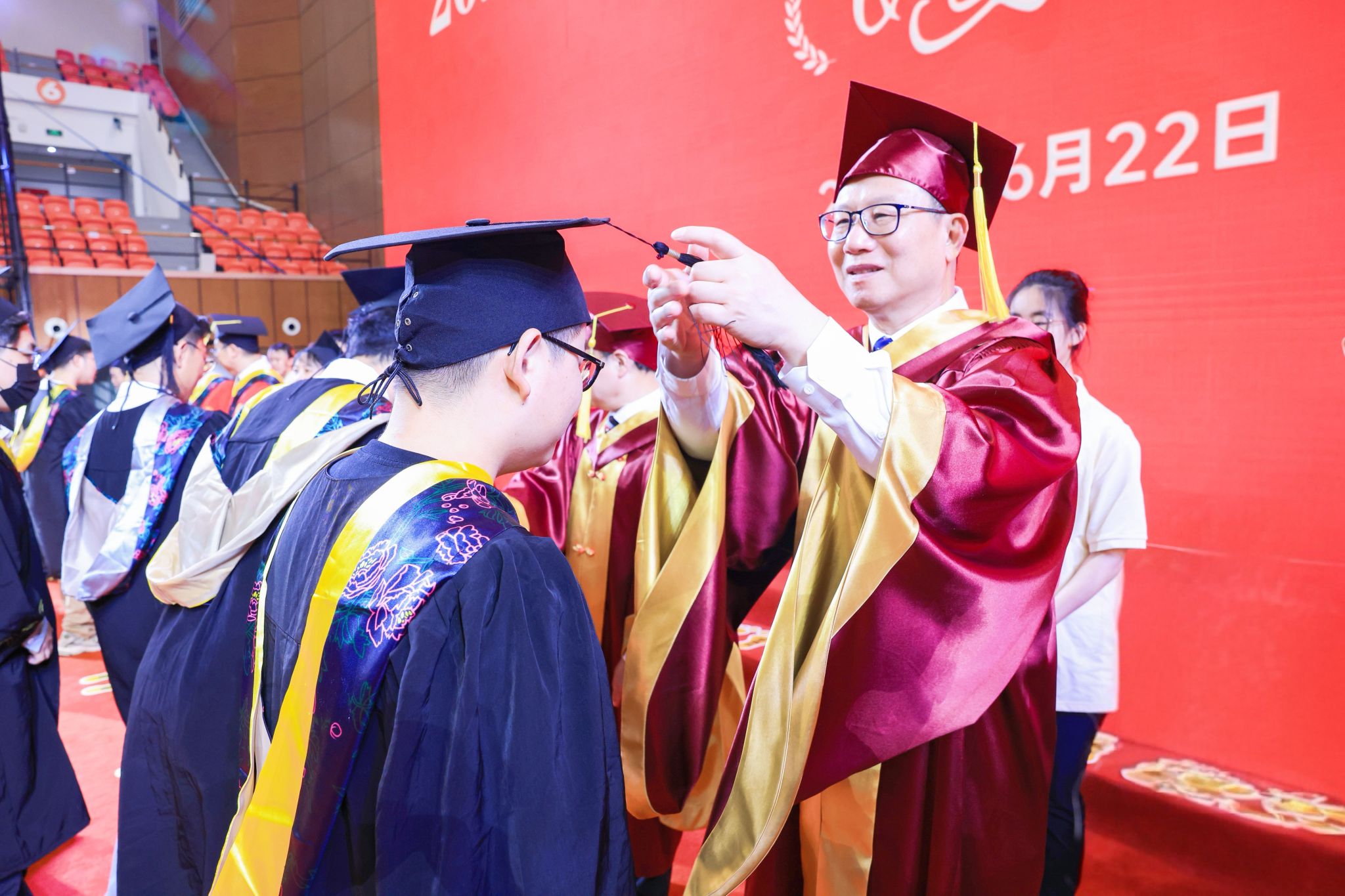 校长汪小帆以《扬应用创新之帆,踏技术变革之浪》为题发表毕业致辞。他深刻洞察当下技术加速演进的时代图景,指出:“人机协同将会在我们的学习、工作和生活中发挥越来越大的作用;技术越是发展,我们越是需要思考作为人的独特价值。”立足于此,汪小帆为即将远航的学子们送上毕业祝福与殷切期望:一是希望同学们坚持以德为先,突出价值引领;二是希望同学们坚持应用创新,驾驭技术浪潮;三是希望同学们坚持终身学习,成为更好的自己!