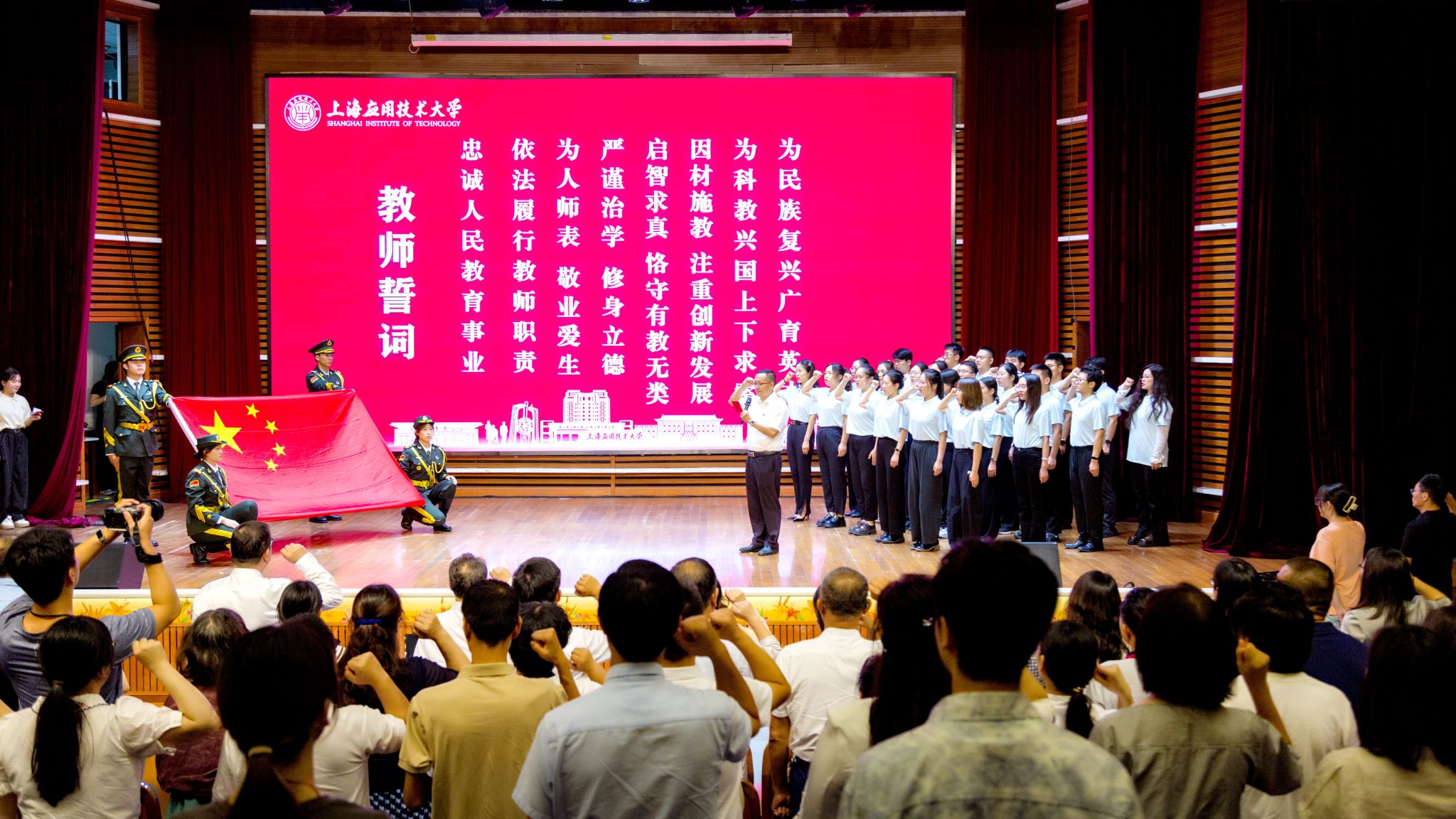 校党委书记郭庆松、校长汪小帆、校党委副书记陈海瑾、副校长毛祥东出席,与广大师生同贺同庆属于教师的节日。亚博足彩各职能部门、二级亚博足彩(部)负责人、教职工及学生代表参加庆祝大会。
