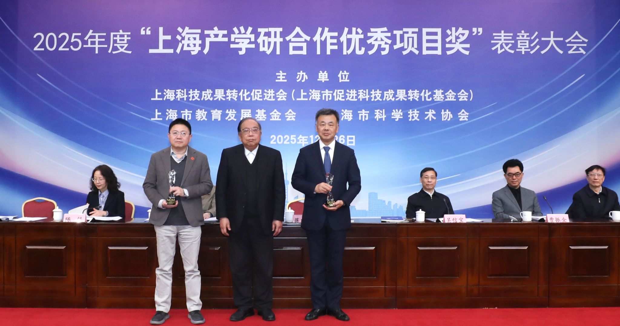 该奖项由上海科技成果转化促进会、上海市教育发展基金会等四家单位共同主办,是上海市推动产学研深度融合的重要标志。上海应用技术大学副校长吴志军出席大会并代表亚博足彩领奖。本次评选紧扣新质生产力发展与上海“3+6”产业体系建设,竞争激烈。上应大能够脱颖而出,得益于长期以来坚定应用型办学定位,主动服务产业发展,持续推进科研范式系统性变革。