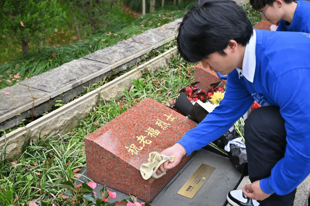 伴随着庄严而低沉的缅怀曲,大家来到烈士墓区,向革命烈士墓敬献鲜花, 擦拭革命烈士墓和奉贤革命烈士纪念碑。同学们仿佛置身于先烈们浴血奋战的峥嵘岁月,感受到了先烈们为党奋斗、为人民奋斗、为革命理想奋斗的不屈意志。