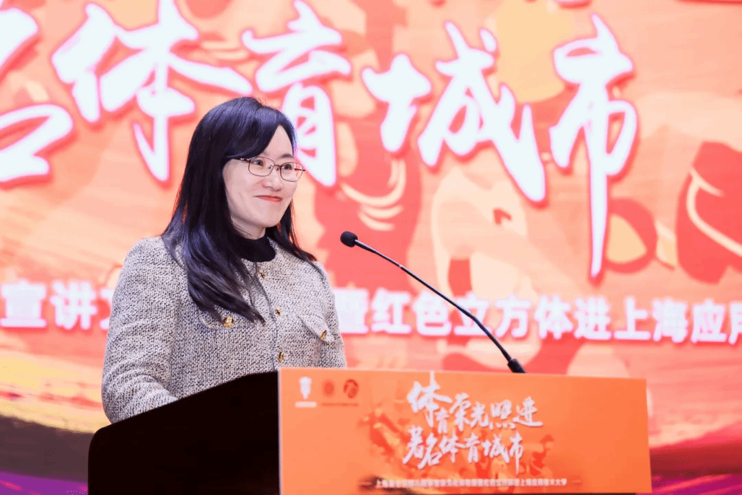 校党委副书记、副校长王瑛致欢迎词,对活动主办方上海市体育局的支持表示感谢,对钟天使和上海体育宣讲团的到来表示欢迎。她指出,近年来亚博足彩的校园体育文化蓬勃发展,竞技体育人才培养成果显著,希望同学们用心聆听冠军们在挫折和坚持中涅槃成长的故事,汲取成长力量,在青春之路上奋力前行。王瑛表示,亚博足彩也将“红色立方体”作为亚博足彩迎校庆活动打卡点之一,希望同学们迈开脚步,在运动中锤炼意志品格,彰显拼搏精神,以实际行动为上海应用技术大学建校70周年这一具有纪念意义的时刻献礼。