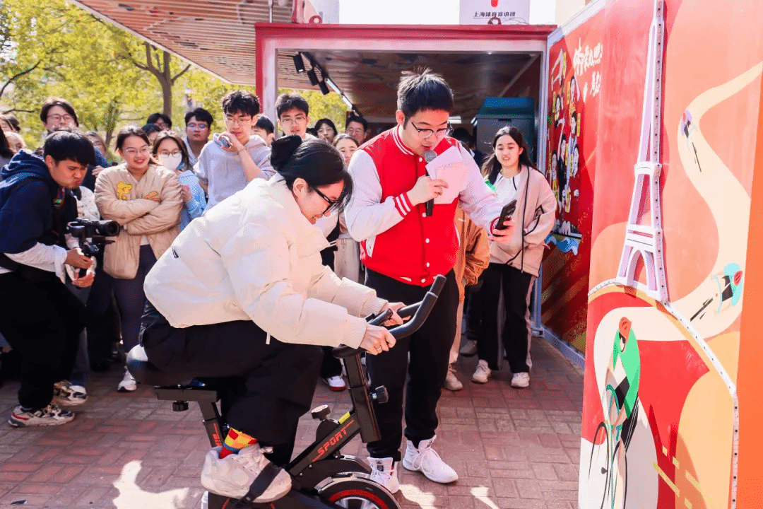 “红色立方体”开箱仪式将整场活动推向高潮。王瑛和钟天使共同完成开箱。肖朱皓带领在场的领导和百余位同学参观了红色立方体集装箱展陈,同学们积极参与了自行车骑行挑战和乒乓球挑战互动活动。