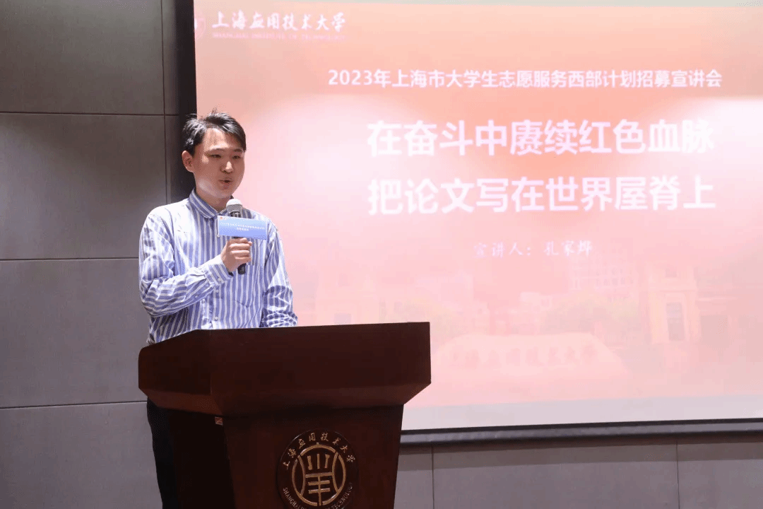 为进一步扩大西部计划的宣传度和影响力,深入推进共青团促进大学生就业行动,引导广大毕业生到西部基层建功立业,5月10日晚19点,“青春志愿行,奉献新时代”2023年上海市大学生志愿服务西部计划招募宣讲会上海应用技术大学专场在我校第六学科楼B210顺利举行。